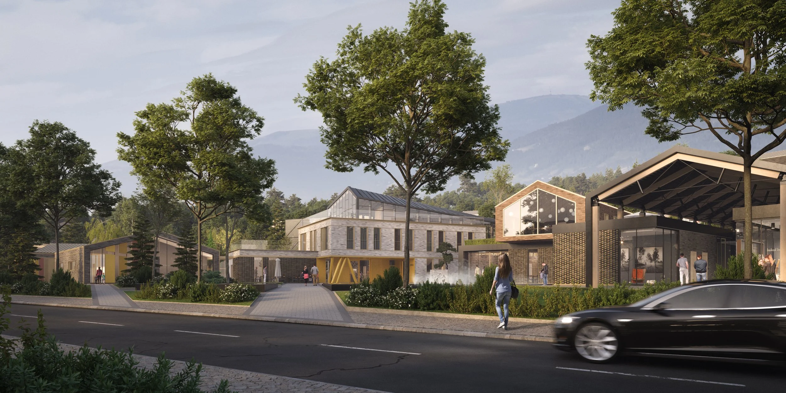 Situated at the foot of Vitosha Mountain, the site benefits from direct contact with its natural surroundings and open views across the area. The varied terrain allows different spatial experiences throughout the development.