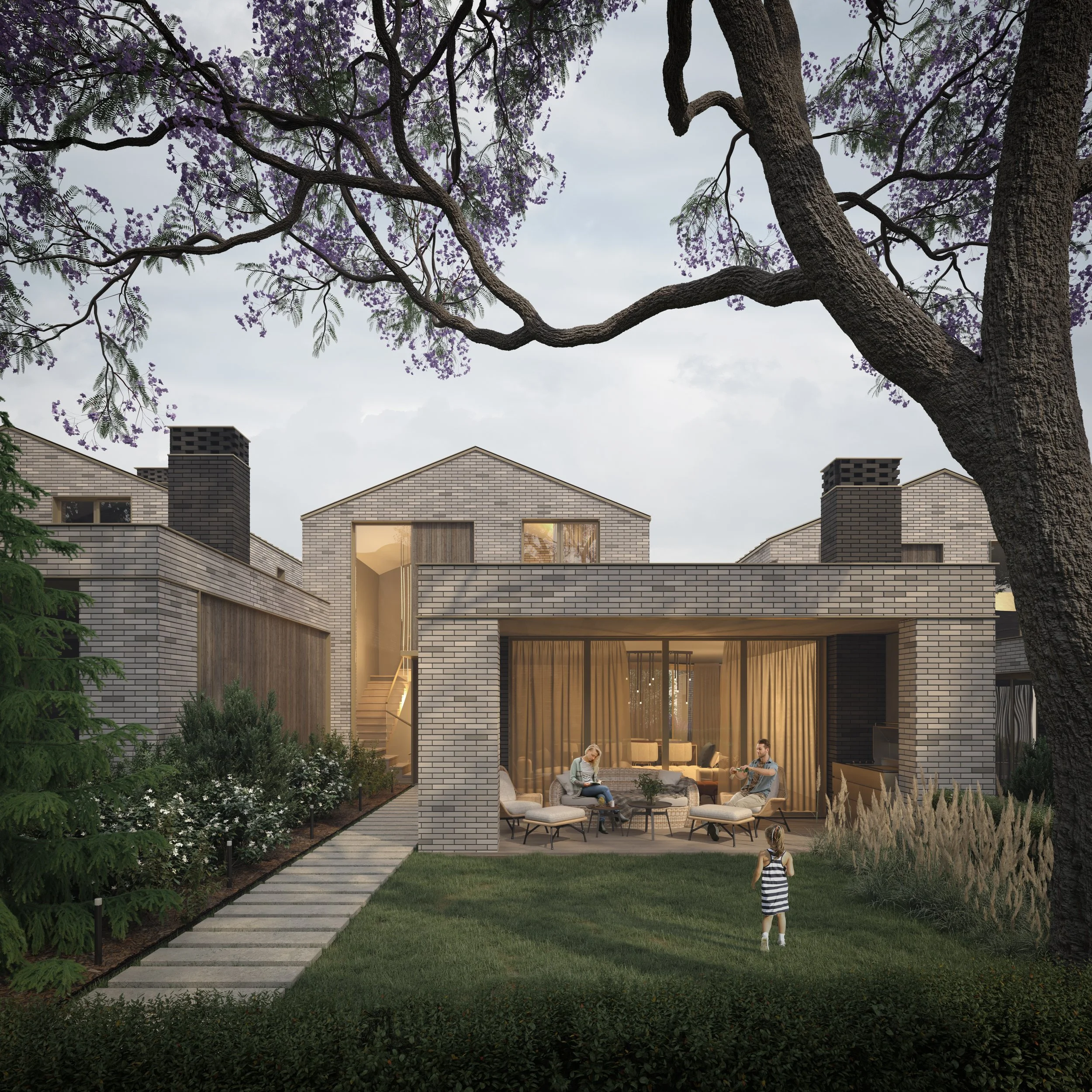 Direct access from private yards to shared areas.