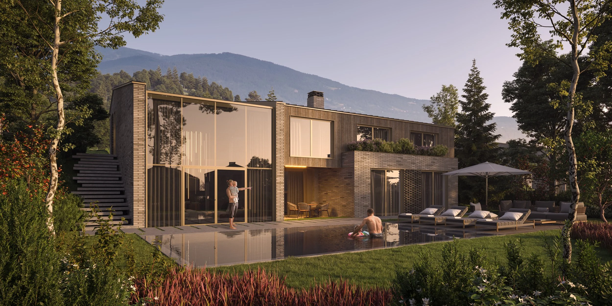 The landscaping strategy is based on a gradual transition between terrain and buildings, highlighting the site’s natural qualities and screening selected elements where required. The varied topography is used to shape a comfortable environment for movement, recreation, and rest.