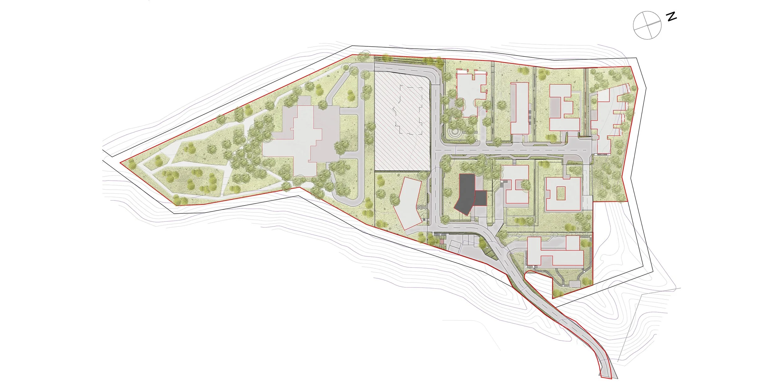 House 3 is located within a lush, forested setting and is carefully designed to integrate with its natural surroundings. Additional landscaping enhances the setting, reinforcing the connection to the site and creating a harmonious relationship between the building and its environment.