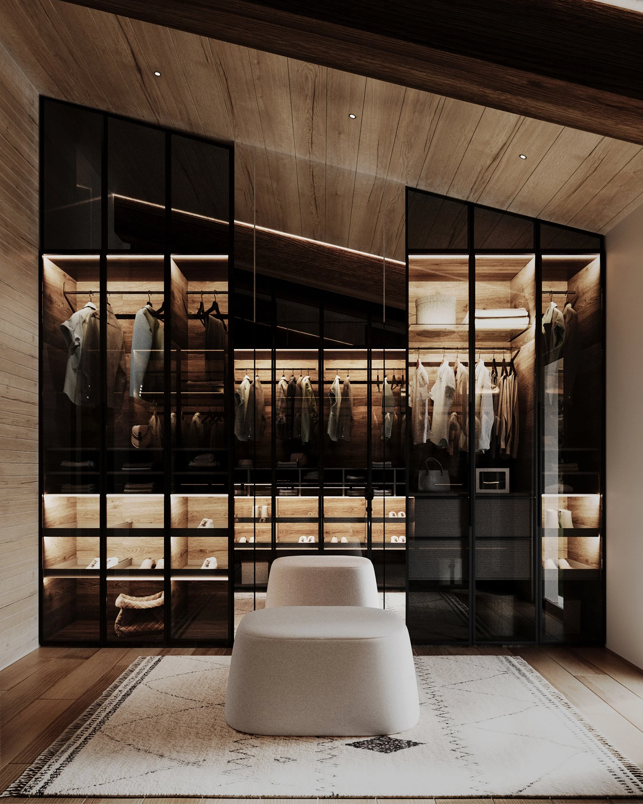 This 460 m² villa is located in Pirin Golf near Razlog. The design combines contemporary architecture with traditional materials—solid stone and wood in warm earth tones. The layout includes four bedrooms, four bathrooms, a living area with a fireplace, a separate kitchen, and open spaces for rest and gathering.